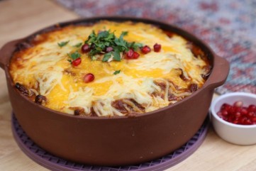فخارة اللحم بالجبنة والبطاطس المهروسة بالفيديو