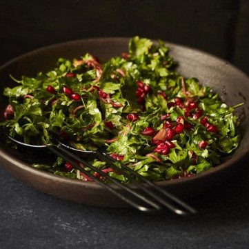 سلطة الكيل وفاكهة الكاكا مع الجوز وجبنة البارميزان