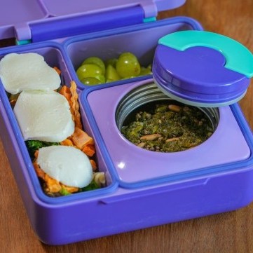 لانش بوكس السبانخ وسلطة المعكرونة مع جبنة الموزاريلا
