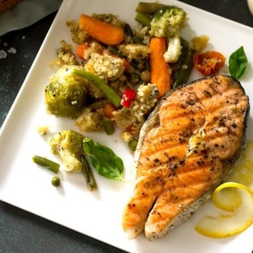 سمك سلمون وخضار مشوية مع الكينوا للتقليل من خطر الإصابة بسرطان الثدي