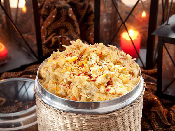 5. أضيفي الشعيرية، وزّعي بقية الزعفران، غطي القدر ودعيها على نار هادئة لمدة 3 دقائق.