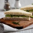 - نضغط الساندويش برفق بشريحة الخبز الثانية، وتقسم من المنتصف، وتُقدم.