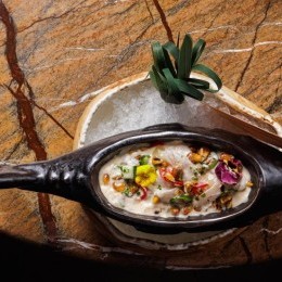 سيفيتشي سمك الدنيس ... سمك الدنيس هو نوع من الأسماك البحرية المعروف أيضاً باسم القدّ (Gilt-head bream). يتميز بلحمه الأبيض وقيمته الغذائية العالية، حيث يحتوي على نسبة عالية من أحماض أوميغا 3 والبروتينات.