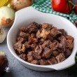 - أضيفي مكعبات اللحم وقلّبيها حتى تأخذ لوناً بنياً من جميع الجهات.