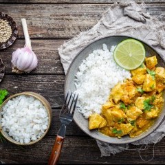 - اسكبي الدجاج مع الصلصة في طبق التقديم، وزيّنيه بالكزبرة المفرومة، ثم قدميه ساخناً إلى جانب الأرز الأبيض.