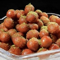 - ضعي اللّقيمات بالكاسترد والنشا في طبق التقديم بعد تغميسها بالقطر، ثم قدّميها فوراً.