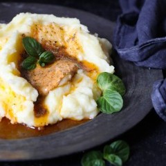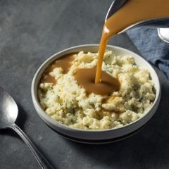 - صبّي مزيج الحليب والزبدة الساخن فوق البطاطس المهروسة.