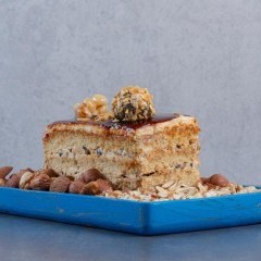 - زيّني الوجه بصوص الكراميل والمكسرات، ثم قدّمي الكيكة باردة.