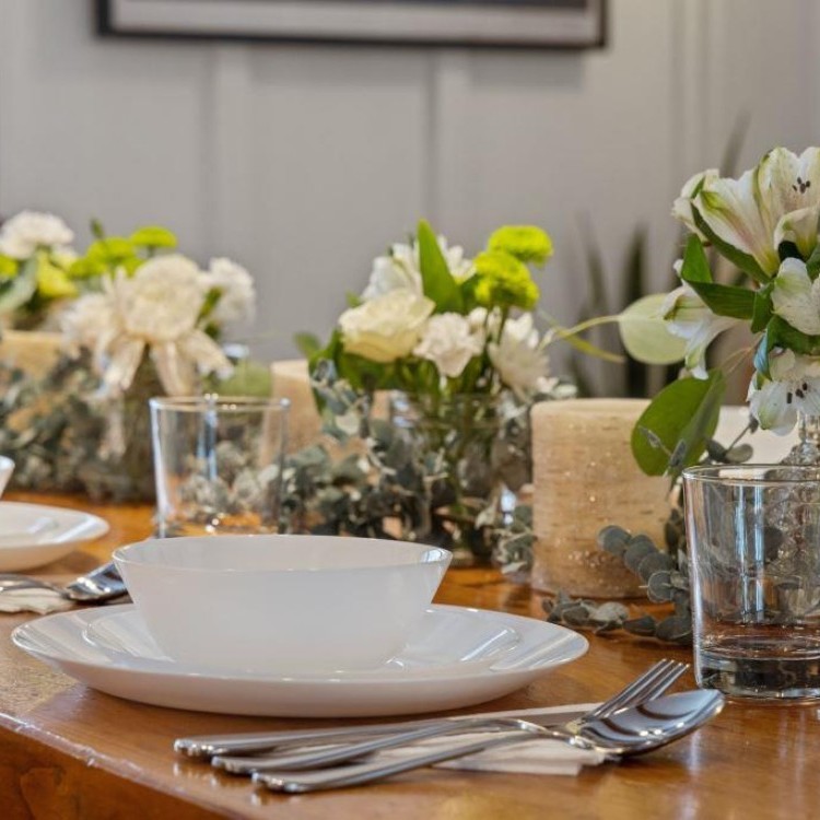 • لتنسيق فخم أكثر، استبدلي الأطباق البيضاء بنقوش ذهبية بسيطة.