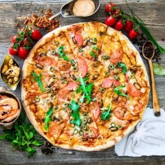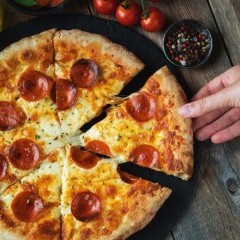 - أخرجي البيتزا من الفرن، وقطعيها وقدميها ساخنة.