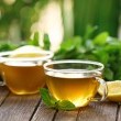 مقادير شاي أخضر مع شرائح الليمون والزنجبيل