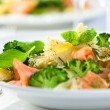 - اسلقي البروكلي في ماء مغلي مملح لمدة 45 ثانية تقريباً، اشطفيه بالماء البارد الجاري، ثم قلّبي البروكلي المسلوق وبراعم الفاصوليا في صلصة الخل بالليمون، تبّليها بالملح والفلفل الأسود.