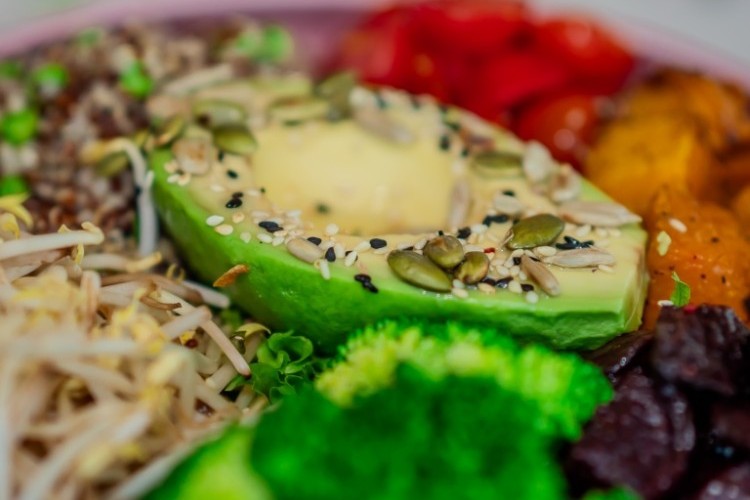 - قطّعي الأفوكادو إلى نصفين، وأزيلي القشرة والبذور، تبّلي بالملح والفلفل الأسود ورشة من البذور المختلطة.