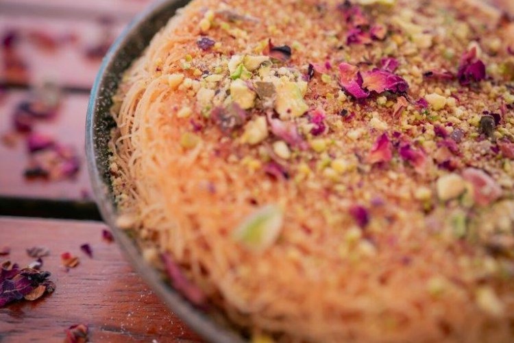 - زجي الكنافة في الفرن لمدّة ثلاثين دقيقة إلى أن تتماسك القشدة، ويصبح لون الكنافة ذهبياً غامقاً.