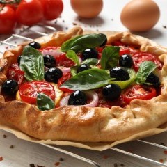 - ضعي القطع في صينية مغلفة بورق الزبدة ثم أدخليه الفرن لمدة 15 دقيقة حتى ينضج ثم زيني بالزيتون أو الطماطم.