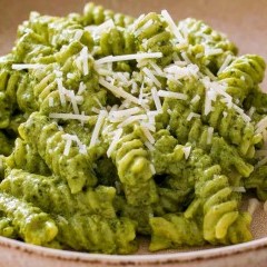 - صفي السباغيتي وضعيها جانباً، واحتفظي بكوب من ماء السلق.
