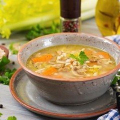 - تبلي بالملح والفلفل الأسود وحركي، وصُبي الماء المغلي، واتركي الشوربة على نار متوسطة 15 دقيقة حتى تنضج الخضراوات.