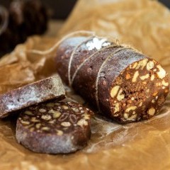 - قطّعي حلى الكاكاو إلى مربعات أو شرائح حسب الذوق، وضعيه في طبق التقديم، وقدميه (يمكنك تزيينه بجوز الهند المبشور أو الكاكاو أو رقائق الشوكولاتة).