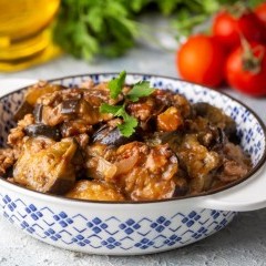10. قدّمي المسقعة باللحمة المفرومة ساخنة بجانب الأرز بالشعيرية.