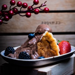 - اخبزي الكيكة في الفرن لمدة 40-50 دقيقة حتى يصبح الوجه بني اللون ويبقى داخلها كريمياً قليلاً.