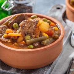 - أضيفي اللحم المسلوق فوق خليط الفاصوليا، وصُبي مقداراً مناسباً من مرق اللحم.