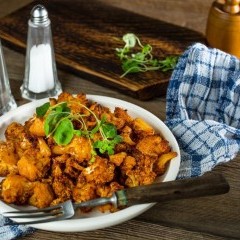 7. أخرجي القرنبيط وضعيه على ورق مطبخ لامتصاص الزيت، وقدّميه ساخناً.