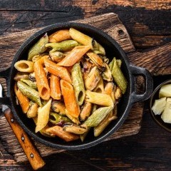 مقادير مكرونة بيني بصلصة الطماطم والزيتون والريحان