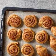 - رتّبي السينابون رول في صينية فرن مبطنة بورق الزبدة، واتركيها حتى ترتاح لحوالي 15 دقيقة.