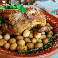 - ضعي الدجاج مع الصلصة في وعاء طاجن، وأدخليه إلى الفرن المحمّى حتى تنضج قطع الدجاج جيداً، ثم قدميه بجانب الأرز.