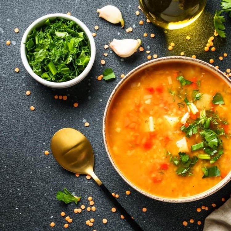 شوربة العدس المطبوخة بمرق عظام اللحم تُصبح أكثر دسامة ودفئاً من تلك المطبوخة بالماء فقط.