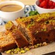 - أضيفي الفستق الحلبي وقلّبي برفق حتى يتداخل.