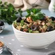 - اخلطي الزيتون مع الفلفل الأحمر والطماطم والبصل في وعاء.