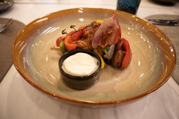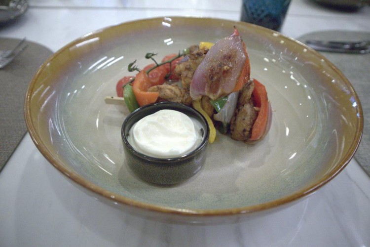 4. تُحضّر أسياخ الدجاج والخضراوات، ثم تُشوى حتى تنضج تماماً وتُقدّم مع مايونيز الثوم.