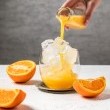 3. وزعي مكعبات الثلج في أكواب التقديم، ثم صبّي عصير البرتقال وقدميه مباشرة.
