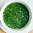 3. ارفعي قطع الدجاج جانباً واحتفظي بالمرق ساخناً، أضيفي الملوخية المفرومة إلى المرق الساخن مع التقليب الخفيف.