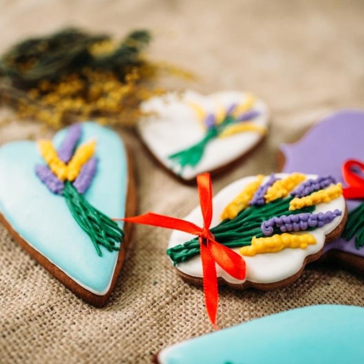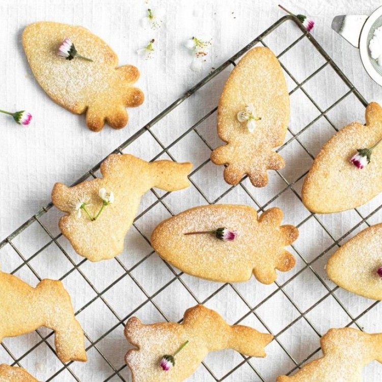 - نحضر العجينة بالطريقة نفسها في وصفة بسكويت الزبدة، ثم نفردها ونستخدم قوالب بأشكال نجوم وقلوب وورود. بعد الخَبز والتبريد، نحضّر الكريمة السكرية بخلط السكر البودرة مع كمية قليلة جداً من السائل حتى تصبح بقوام كثيف قابل للفرد.