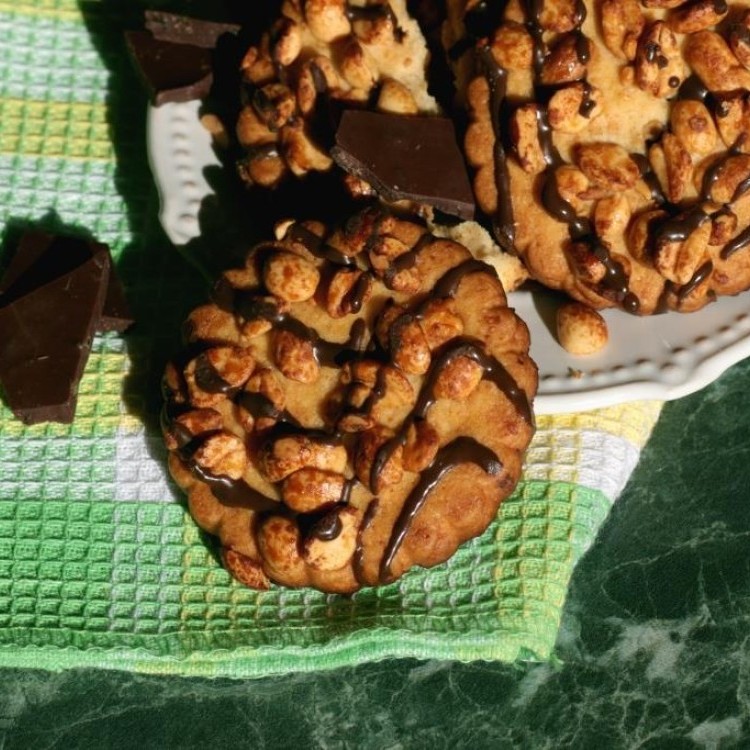 - نخبز في فرن محمى على 170 درجة مئوية لمدة 12–15 دقيقة حتى تتماسك الحواف، ونتركها تبرد حتى تصبح مقرمشة من الخارج وطرية من الداخل.