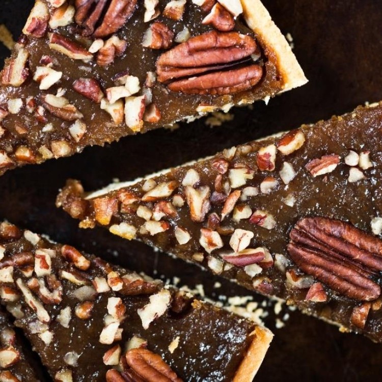 الفكرة: تحضير قاعدة تارت مقرمشة، ثم حشوها بطبقة من معجون التمر، وفوقها خليط مكسرات محمصة مغموسة بالعسل.