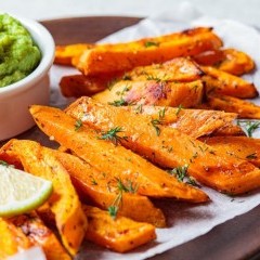 - اطهي على درجة حرارة 200 مئوية لمدة 18–20 دقيقة، مع تقليب الشرائح نصف المدة للحصول على تحمير متساوي ومقرمش من جميع الجهات.