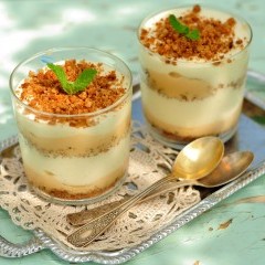 - صوص الكراميل الجاهز : حسب الرغبة (أو بسكويت مطحون / للتزيين)