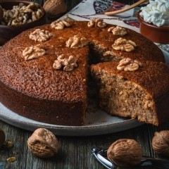 - اسكبي الخليط في قالب الكيك، ثم وزّعي الجوز المفروم على الوجه.