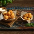 - شكّلي العجينة إلى كرات صغيرة بحجم حبة الجوز، ثم افردي كل كرة قليلاً وضعي قطعة الجبنة وملعقة صغيرة من البقدونس، وأغلقي العجينة على شكل كرة محكمة.