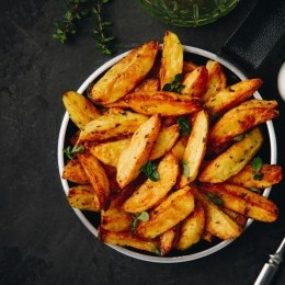 بطاطس ودجز مشوية في القلاية الهوائية ... تُعد بطاطس ودجز المشوية من الأطباق المثالية على السفرة، فهي تمنح الجسم طاقة طويلة وتساعد على الشعور بالشبع، كما أنها صحية لأنها تُحضّر دون قلي عميق، ويمكنك التتبيل بمزيج من البهارات لتعطي طعماً شهياً ومقرمشاً في الوقت نفسه.