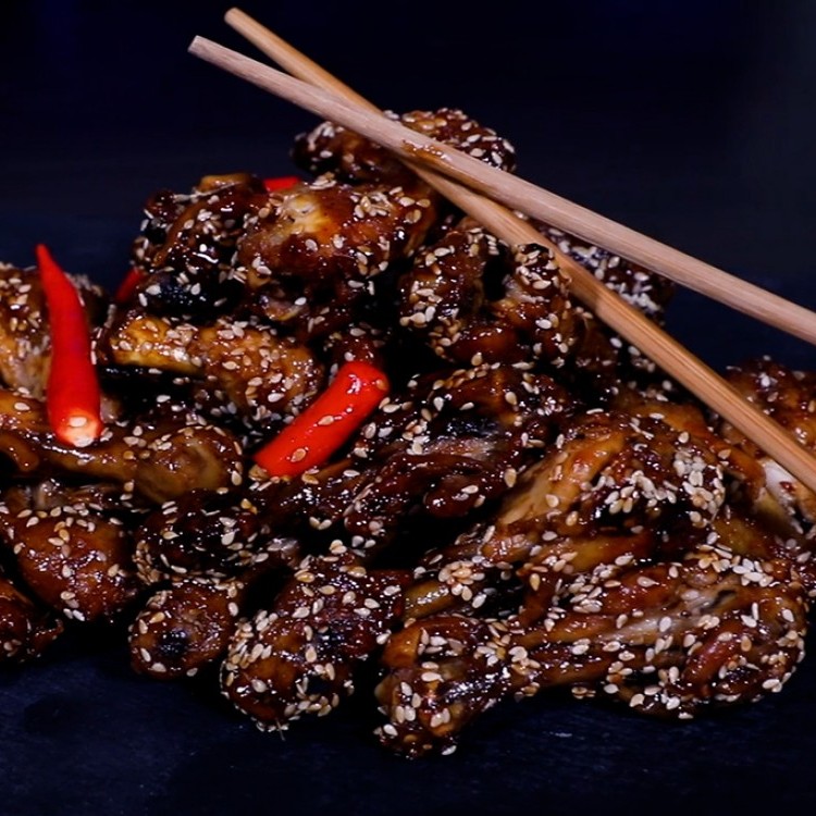 جوانج الدجاج بالسمسم والعسل بالفيديو