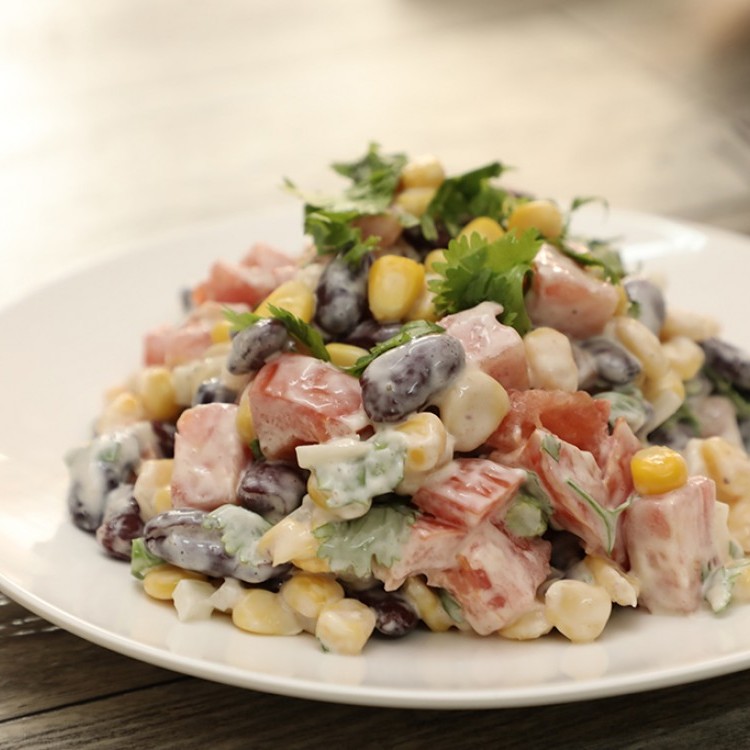 سلطة الذرة بالفاصوليا المكسيكية والمايونيز بالفيديو