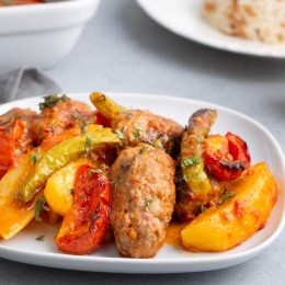 صينية البطاطس بكرات اللحم المفروم ... تمتعي بوجبة شهية في صينية واحدة، وجربي صينية حلقات البطاطس اللذيذة وكرات اللحمة المفرومة الغنية بالنكهة. هذا الطبق يجمع بين طراوة البطاطس ونكهة الكفتة المميزة، ويمكن تحضيره بسهولة في الفرن ليمنحكِ وجبة متكاملة ومشبعة، ويمكنكِ تقديمها مع الأرز بالشعيرية.