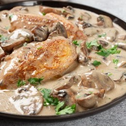 دجاج بالكريمة والمشروم ... من الأطباق الغنية واللذيذة التي تجمع بين طراوة صدور الدجاج ونكهة الكريمة الغنية وطعم المشروم المميز. هذه الوصفة سهلة التحضير في المنزل، وتعتبر خياراً رائعاً لوجبة غداء أو عشاء فاخرة دون عناء، كما يمكن تقديمها مع الأرز، المعكرونة، أو البطاطس المهروسة لوجبة متكاملة.