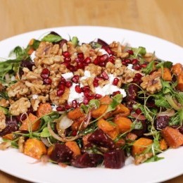 سلطة الشمندر والبطاطس الحلوة المشوية بالفيديو ... في هذه السلطة يُقدِّم الشمندر والبطاطس المشوية فوائد صحية متعددة؛ فالشمندر غني بمضادات الأكسدة والنيترات التي تخفض ضغط الدم، بينما تُعد البطاطس المشوية مصدراً ممتازاً للألياف والفيتامينات والمعادن، مما يدعم صحة الجهاز الهضمي والمناعة.