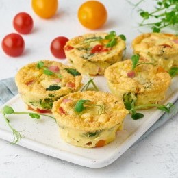مافن البيض بجبنة القريش للفطور ... خيار رائع لوجبة الإفطار أو كوجبة خفيفة مشبعة خلال اليوم. تتميز بقوامها الطري والهش، ونكهتها الغنية بسبب الحموضة الخفيفة واللذيذة للجبن القريش. سهلة التحضير وسريعة، كما يمكن تخزينها في الثلاجة أو تجميدها للاستمتاع بها لاحقاً. تقدم دافئة لتكون ألذ، ويمكن تزيينها بالبصل الأخضر أو الأعشاب الطازجة لإضافة لمسة من النكهة واللون.