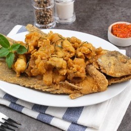 السمك المقلي المقرمش على الطريقة الخليجية ... السمك المقلي الخليجي يشتهر بتتبيلته الغنية بالبهارات والنكهات العربية، وبقشرته المقرمشة التي تبقى متماسكة حتى بعد القلي. يتميز بسهولة تحضيره ويُقدّم غالباً مع الليمون، الدقوس، أو الأرز الأبيض.